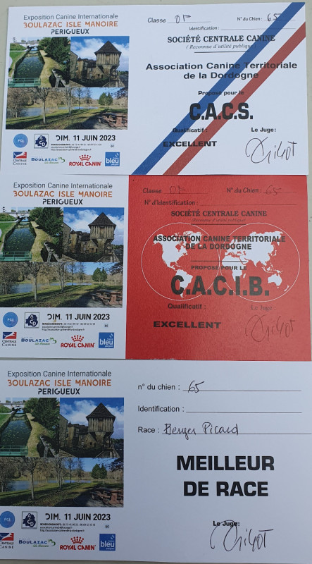 PERIGUEUX (11/06/2023) - CACIB (Certif. d'Aptitude Championnat International de Beauté - EXCELLENT