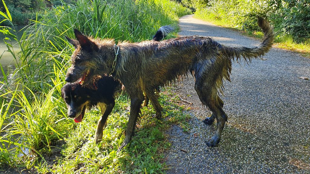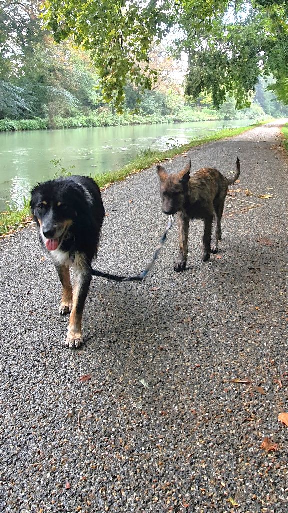 Ma fidèle "Shere Khan" ! Ma chienne "Shere Khan des Bergers du desert". Juil 2021 - Arrivée aux jardins de Noé à 2 mois Le lendemain de mon arrivée j'ai 4 mois ! Je n'fais pas ce que je veux :( Rigolez pas trop fort je dors! J'ai 8 mois J'ai 8 mois et 5s :D T'as vu j'nage mieux que le vieux border ;) J'ai 15 mois J'ai 16 mois Je cours comme une fusée Mon maitre est caché, je dois pas bouger, j'attends qu'il appellle ;) Certificat de Sociiabilité et d'Aptitude à l'Utilisation en mai 2023 Excellent à l'expo Villeneuve 2023, bon j'étais seule de ma race :)) Perigueux 2023 toujours toute seule de ma race: 2 Excellent quand meme Ils sont tous partis, mais on attend le concour de beauté demain ;) 10 jours avant mise bas: mon maitre a l'air stressé ... Nouvelle arrivée dans la famille, elle est pas comme nous, méfiance... Parait qu'elle arrive de la SPA, encore une cas soc...! Essayons de communiquer, voyons si elle parle chien? 23 sept 2023 : J - 4 avant mise bas. 27 sept 2023, cette nuit je donne naissance à 7 petits chiots. Belle petite nichée... 3kg200 de petits chiots :) Attention on est surveillé ... Doucement y en aura pour tous le monde ! P'tit complément pour la petite dernière, y a bousculade à la tétée ;)