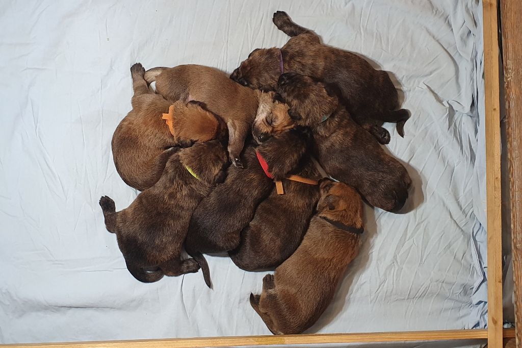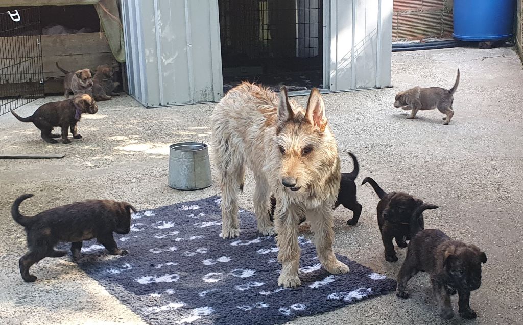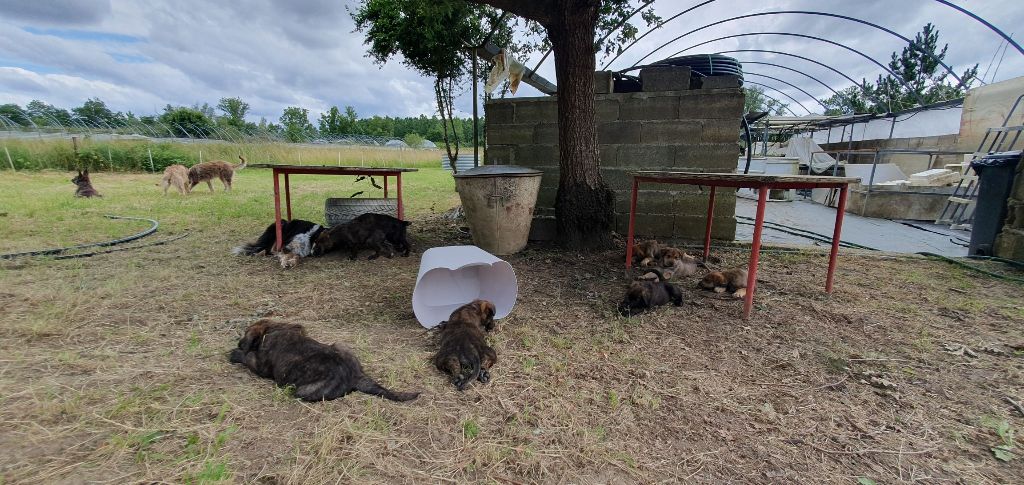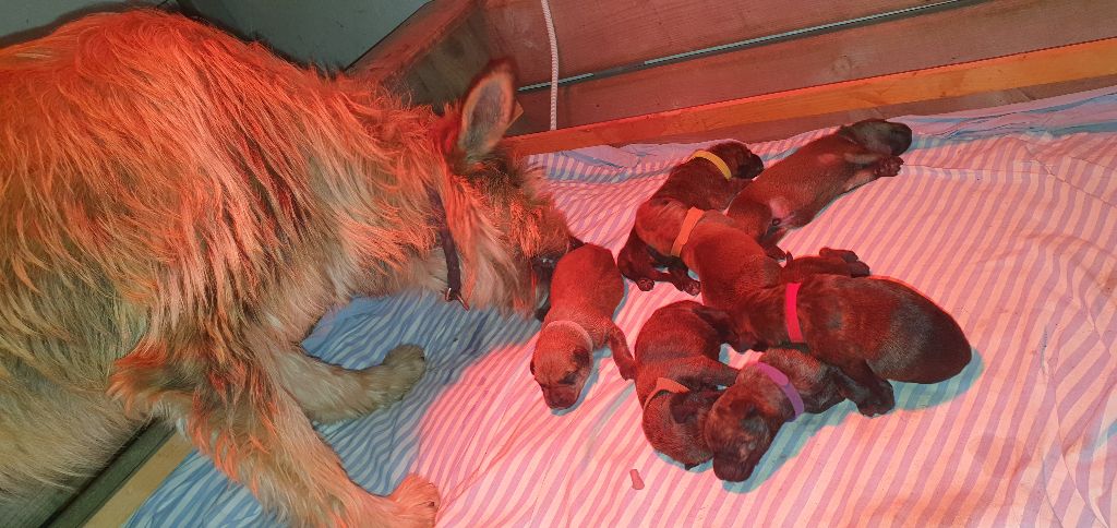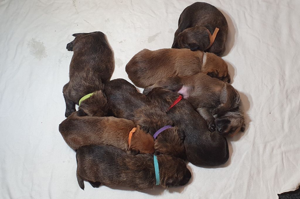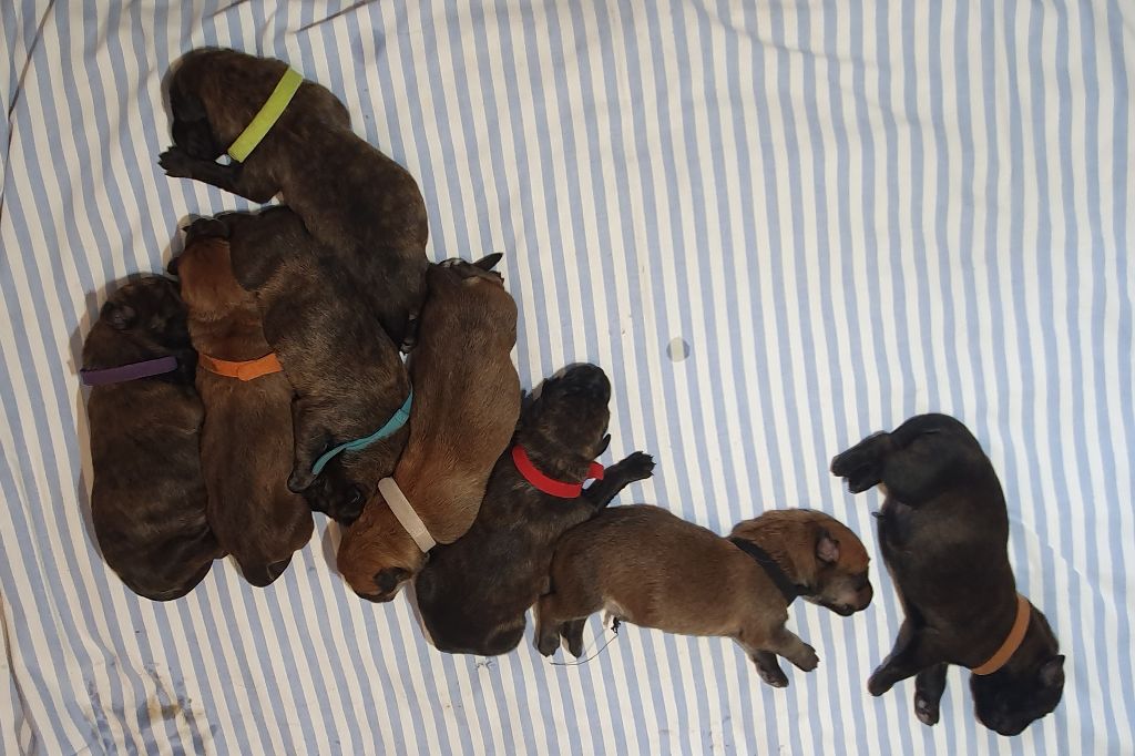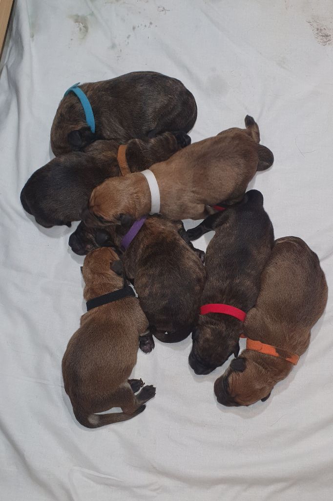 2024 - Les 8 nains de Shere Khan :) Le lendemain de la mise bas Les 8 chiots, 4 femelles 4 males 5 jours avant ;) Même le papa s'occupe de sa progéniture :) Le matin de la mise bas, 9h12, le 1er chiot à naitre. La 1ere sortie femelle fauve collier orange - 9h19 Le 2eme est né - male bringé collier violet - 10h12 Le 3eme est né - male bringé collier bleu - 11h29 Le 4eme est en train de naitre, tout se passe bien. Toujours le 4eme tout juste sortie de sa poche. Le 4eme - male bringé collier marron né à 12h10 18h36 - il y en a 7, au repos après avoir tous tété. 18h30 certainement la fin, le véto avait dit 6 voir 7 :) Shere Khan - une très bonne maman. Radiographie 5 jours avant à la clinique Le vétérinaire en voit 6 voir peut-être 7. 18h50 - Arrivée d'un 8eme. Femelle bringée elle aura le collier jaune Taïko le papa participe ;) Cuvée 2024 Ultime la demi soeur participe aussi :) Une affaire de Famille! On apprend à laper, c'est plus long :) C'est meilleur direct à la tireuse :) On attaque la 4eme semaine ! On est trimballé, maison, remorque, parc :( mais on mange bien :) Maman n'est jamais tès loin :) Notre demi soeur s'occupe de nous aussi. Sous surveillance de Papa :) Notre maître ne fait pas que ramasser nos crottes, il joue aussi :) 4eme semaine avec Maman Papa et notre grande Soeur Ultime :) Notre grande demi-soeur, on l'appelle Tim, c'est plus court. Papa adore faire la vaisselle :) Notre maître passe sa journée à nous compter :) D'ailleur il en manque un, il a du partir en douce, on a rien vu :) Sous la surveillance de Taïko notre Père, attention :) Après une bonne tétée, la sieste avec Maman s'impose :) Voila la pesée, plus de 16,5 kg à nous 8 :) Va falloir trouver mieux que la gamelle pour nous peser :( Atterissage sur le nez. Elle tient pas ta gamelle ! Bhé si ça tient, c'est juste qu'il faut pas bouger :) C'est encore moi le plus gros :) Ma grande soeur m'adore. Elle est super forte :) On peut pas être tranquille :( Tu veux ma photo ?! C'est la récré ! :) Notre grande soeur est top cool! 1, 2, 3, 4, 5, 6, 7, .... il en manque encore un ? Hè j'suis pas en bois ! Patée d'annif, on a 1 mois ! 1, 2, 3, 4, 5, 6, 7, 8. 1, 2, 3, 4, 5, 6, 7, 8. 1, 2, 3, 4, 5, 6, 7, 8. c'est bon ils sont tous là :) Taïko toujours de corvée de vaisselle :) Elle est belle ma Shere Khan! Pesé collier bleu 4630g Pesée collier blanc 4430g Pesée collier orange 4030g Pesé collier violet 4930g Pesée collier rouge 4230g Pesée collier noir 4430g Pesée collier marron 4730g Pesée collier jaune 4430g Sortie quotidienne en famille :)
