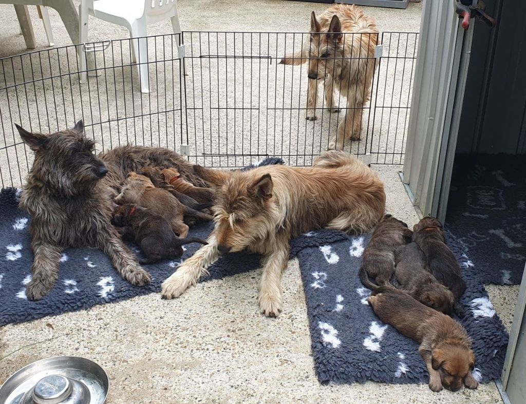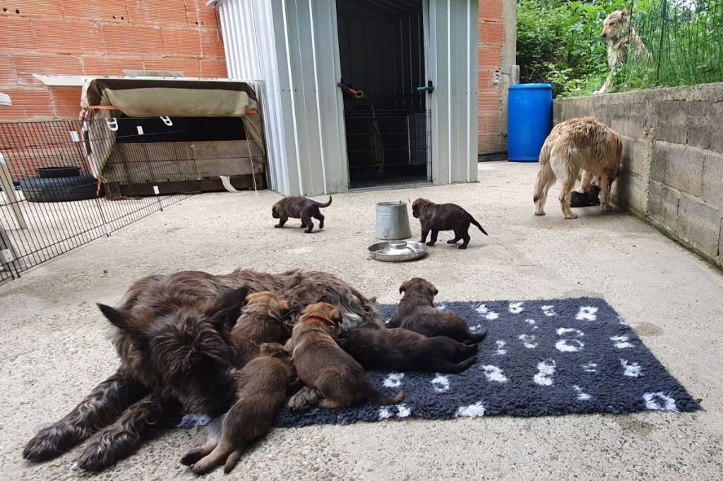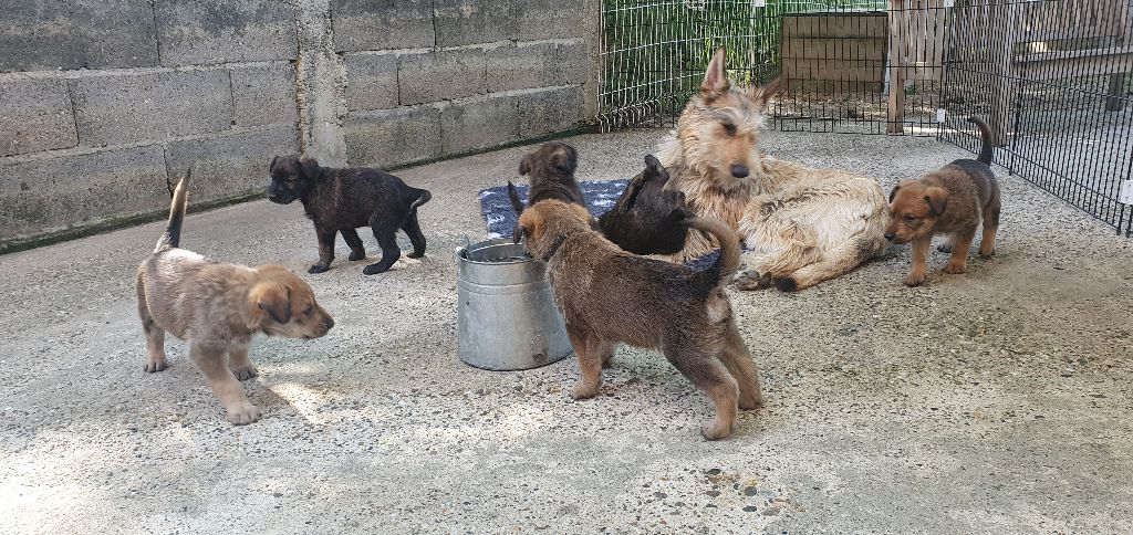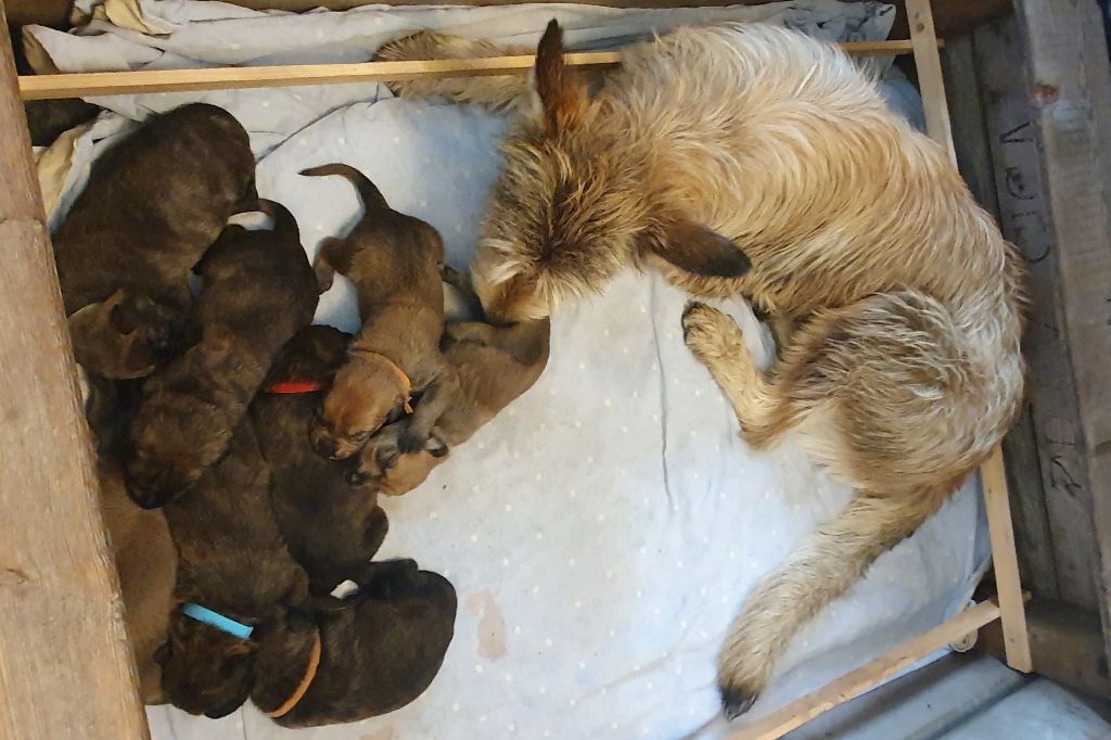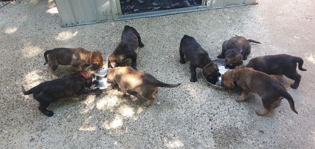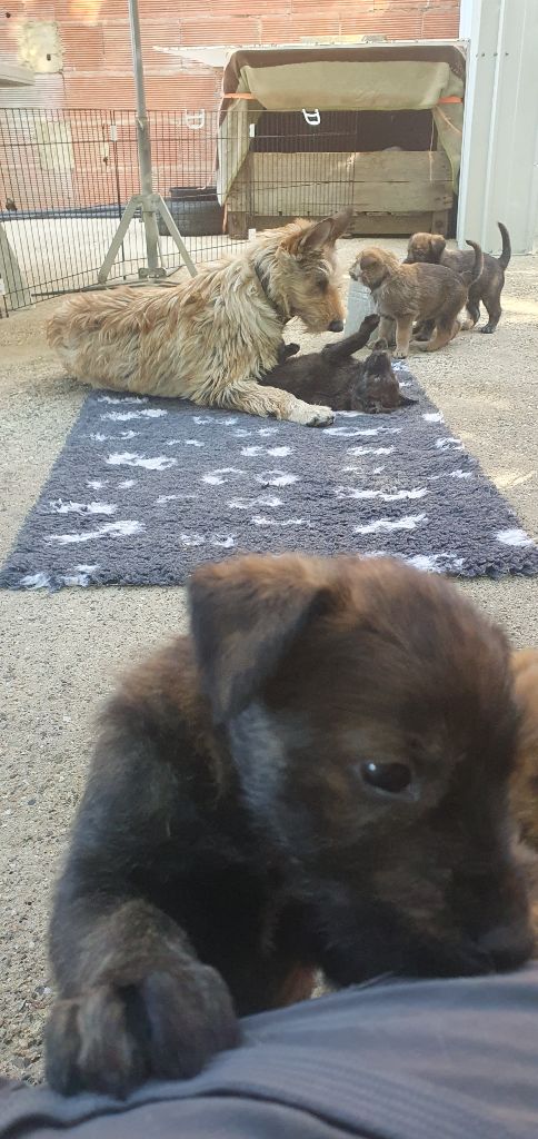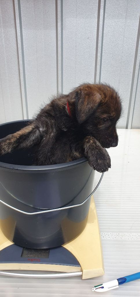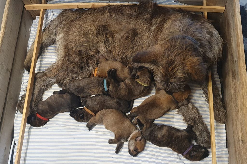 2024 - Les 8 nains de Shere Khan :) Le lendemain de la mise bas Les 8 chiots, 4 femelles 4 males 5 jours avant ;) Même le papa s'occupe de sa progéniture :) Le matin de la mise bas, 9h12, le 1er chiot à naitre. La 1ere sortie femelle fauve collier orange - 9h19 Le 2eme est né - male bringé collier violet - 10h12 Le 3eme est né - male bringé collier bleu - 11h29 Le 4eme est en train de naitre, tout se passe bien. Toujours le 4eme tout juste sortie de sa poche. Le 4eme - male bringé collier marron né à 12h10 18h36 - il y en a 7, au repos après avoir tous tété. 18h30 certainement la fin, le véto avait dit 6 voir 7 :) Shere Khan - une très bonne maman. Radiographie 5 jours avant à la clinique Le vétérinaire en voit 6 voir peut-être 7. 18h50 - Arrivée d'un 8eme. Femelle bringée elle aura le collier jaune Taïko le papa participe ;) Cuvée 2024 Ultime la demi soeur participe aussi :) Une affaire de Famille! On apprend à laper, c'est plus long :) C'est meilleur direct à la tireuse :) On attaque la 4eme semaine ! On est trimballé, maison, remorque, parc :( mais on mange bien :) Maman n'est jamais tès loin :) Notre demi soeur s'occupe de nous aussi. Sous surveillance de Papa :) Notre maître ne fait pas que ramasser nos crottes, il joue aussi :) 4eme semaine avec Maman Papa et notre grande Soeur Ultime :) Notre grande demi-soeur, on l'appelle Tim, c'est plus court. Papa adore faire la vaisselle :) Notre maître passe sa journée à nous compter :) D'ailleur il en manque un, il a du partir en douce, on a rien vu :) Sous la surveillance de Taïko notre Père, attention :) Après une bonne tétée, la sieste avec Maman s'impose :) Voila la pesée, plus de 16,5 kg à nous 8 :) Va falloir trouver mieux que la gamelle pour nous peser :( Atterissage sur le nez. Elle tient pas ta gamelle ! Bhé si ça tient, c'est juste qu'il faut pas bouger :) C'est encore moi le plus gros :) Ma grande soeur m'adore. Elle est super forte :) On peut pas être tranquille :( Tu veux ma photo ?! C'est la récré ! :) Notre grande soeur est top cool! 1, 2, 3, 4, 5, 6, 7, .... il en manque encore un ? Hè j'suis pas en bois ! Patée d'annif, on a 1 mois ! 1, 2, 3, 4, 5, 6, 7, 8. 1, 2, 3, 4, 5, 6, 7, 8. 1, 2, 3, 4, 5, 6, 7, 8. c'est bon ils sont tous là :) Taïko toujours de corvée de vaisselle :) Elle est belle ma Shere Khan! Pesé collier bleu 4630g Pesée collier blanc 4430g Pesée collier orange 4030g Pesé collier violet 4930g Pesée collier rouge 4230g Pesée collier noir 4430g Pesée collier marron 4730g Pesée collier jaune 4430g Sortie quotidienne en famille :)