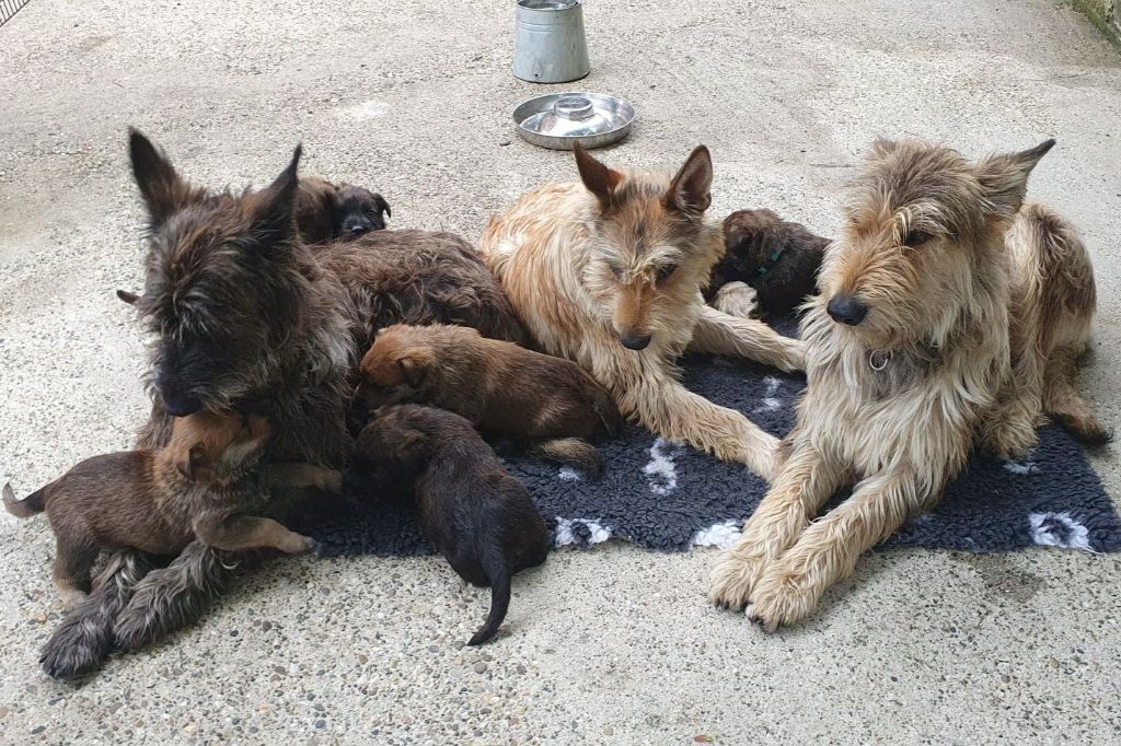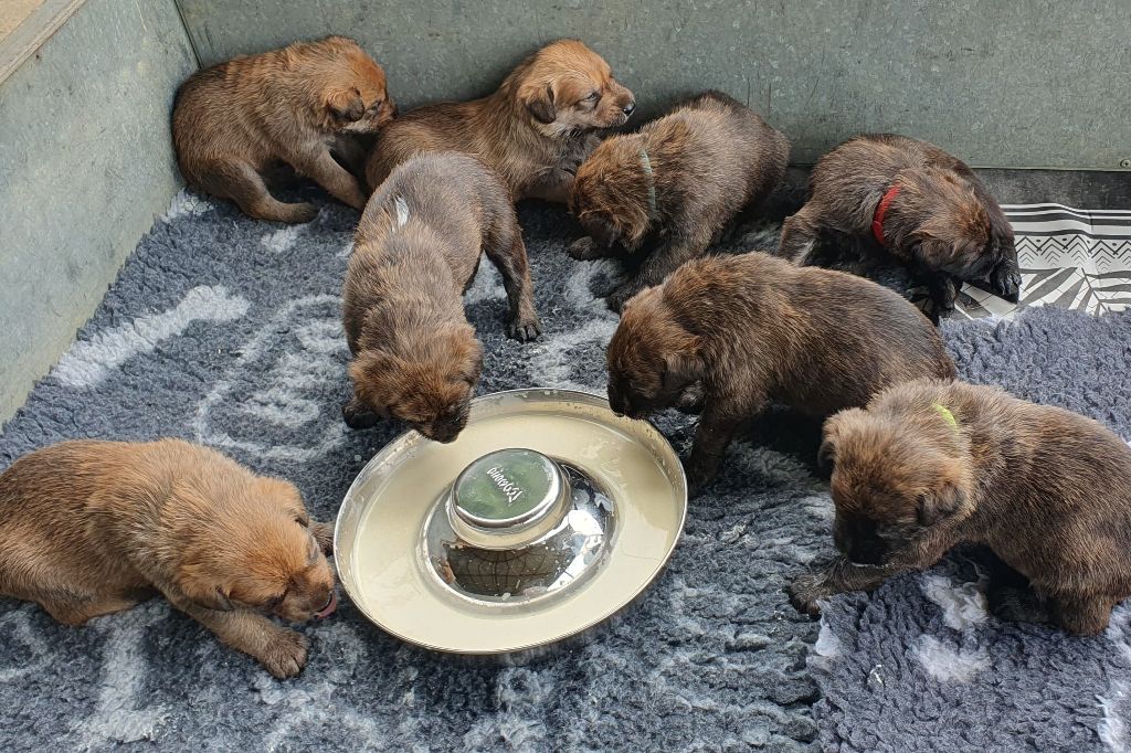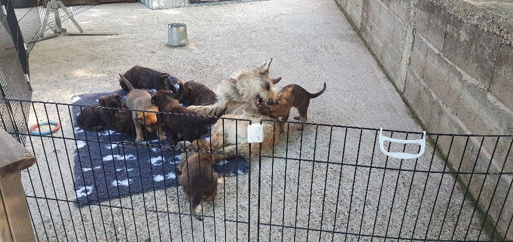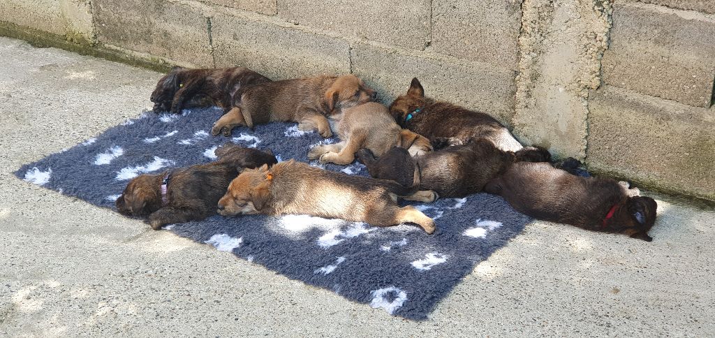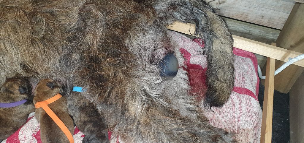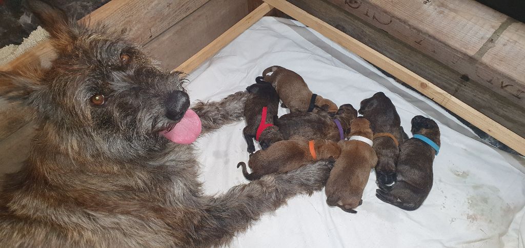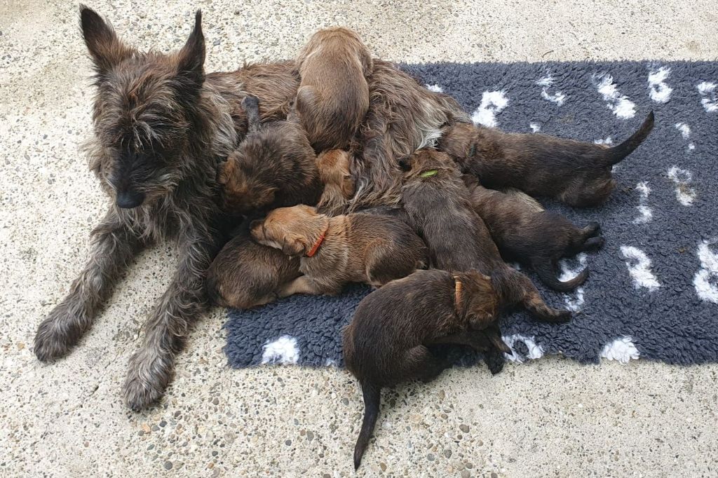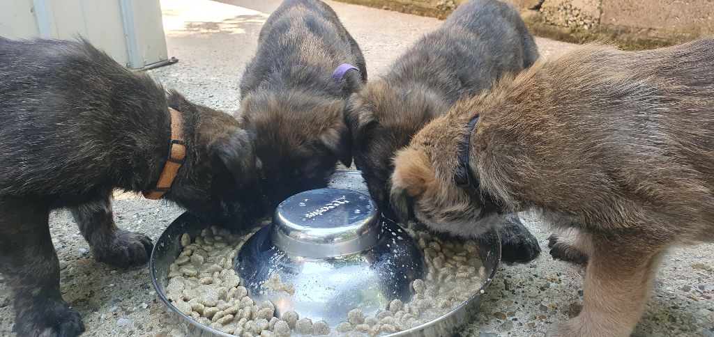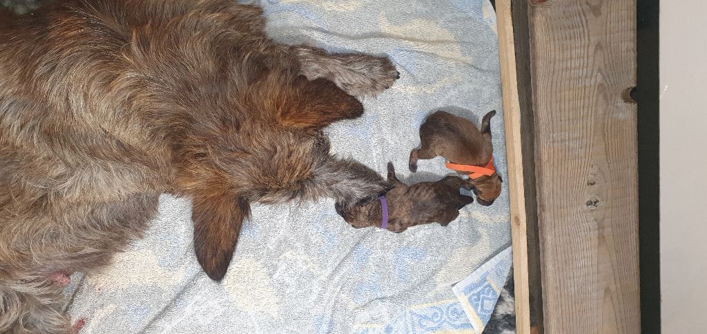 2024 - Les 8 nains de Shere Khan :) Le lendemain de la mise bas Les 8 chiots, 4 femelles 4 males 5 jours avant ;) Même le papa s'occupe de sa progéniture :) Le matin de la mise bas, 9h12, le 1er chiot à naitre. La 1ere sortie femelle fauve collier orange - 9h19 Le 2eme est né - male bringé collier violet - 10h12 Le 3eme est né - male bringé collier bleu - 11h29 Le 4eme est en train de naitre, tout se passe bien. Toujours le 4eme tout juste sortie de sa poche. Le 4eme - male bringé collier marron né à 12h10 18h36 - il y en a 7, au repos après avoir tous tété. 18h30 certainement la fin, le véto avait dit 6 voir 7 :) Shere Khan - une très bonne maman. Radiographie 5 jours avant à la clinique Le vétérinaire en voit 6 voir peut-être 7. 18h50 - Arrivée d'un 8eme. Femelle bringée elle aura le collier jaune Taïko le papa participe ;) Cuvée 2024 Ultime la demi soeur participe aussi :) Une affaire de Famille! On apprend à laper, c'est plus long :) C'est meilleur direct à la tireuse :) On attaque la 4eme semaine ! On est trimballé, maison, remorque, parc :( mais on mange bien :) Maman n'est jamais tès loin :) Notre demi soeur s'occupe de nous aussi. Sous surveillance de Papa :) Notre maître ne fait pas que ramasser nos crottes, il joue aussi :) 4eme semaine avec Maman Papa et notre grande Soeur Ultime :) Notre grande demi-soeur, on l'appelle Tim, c'est plus court. Papa adore faire la vaisselle :) Notre maître passe sa journée à nous compter :) D'ailleur il en manque un, il a du partir en douce, on a rien vu :) Sous la surveillance de Taïko notre Père, attention :) Après une bonne tétée, la sieste avec Maman s'impose :) Voila la pesée, plus de 16,5 kg à nous 8 :) Va falloir trouver mieux que la gamelle pour nous peser :( Atterissage sur le nez. Elle tient pas ta gamelle ! Bhé si ça tient, c'est juste qu'il faut pas bouger :) C'est encore moi le plus gros :) Ma grande soeur m'adore. Elle est super forte :) On peut pas être tranquille :( Tu veux ma photo ?! C'est la récré ! :) Notre grande soeur est top cool! 1, 2, 3, 4, 5, 6, 7, .... il en manque encore un ? Hè j'suis pas en bois ! Patée d'annif, on a 1 mois ! 1, 2, 3, 4, 5, 6, 7, 8. 1, 2, 3, 4, 5, 6, 7, 8. 1, 2, 3, 4, 5, 6, 7, 8. c'est bon ils sont tous là :) Taïko toujours de corvée de vaisselle :) Elle est belle ma Shere Khan! Pesé collier bleu 4630g Pesée collier blanc 4430g Pesée collier orange 4030g Pesé collier violet 4930g Pesée collier rouge 4230g Pesée collier noir 4430g Pesée collier marron 4730g Pesée collier jaune 4430g Sortie quotidienne en famille :)