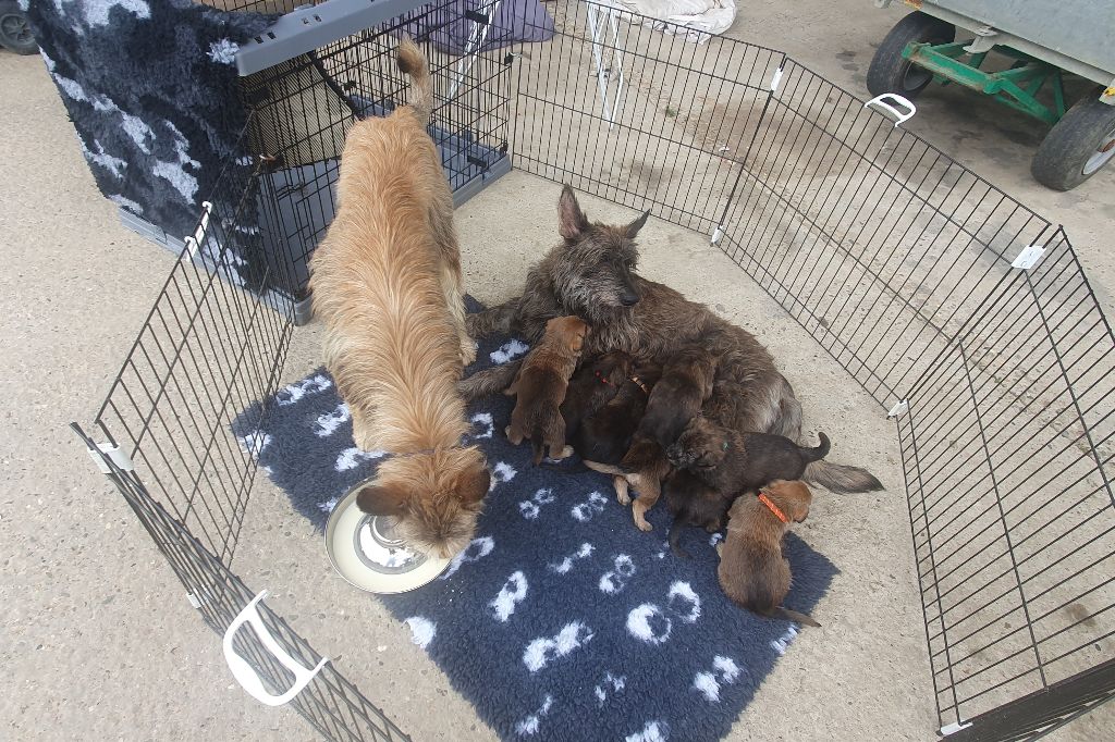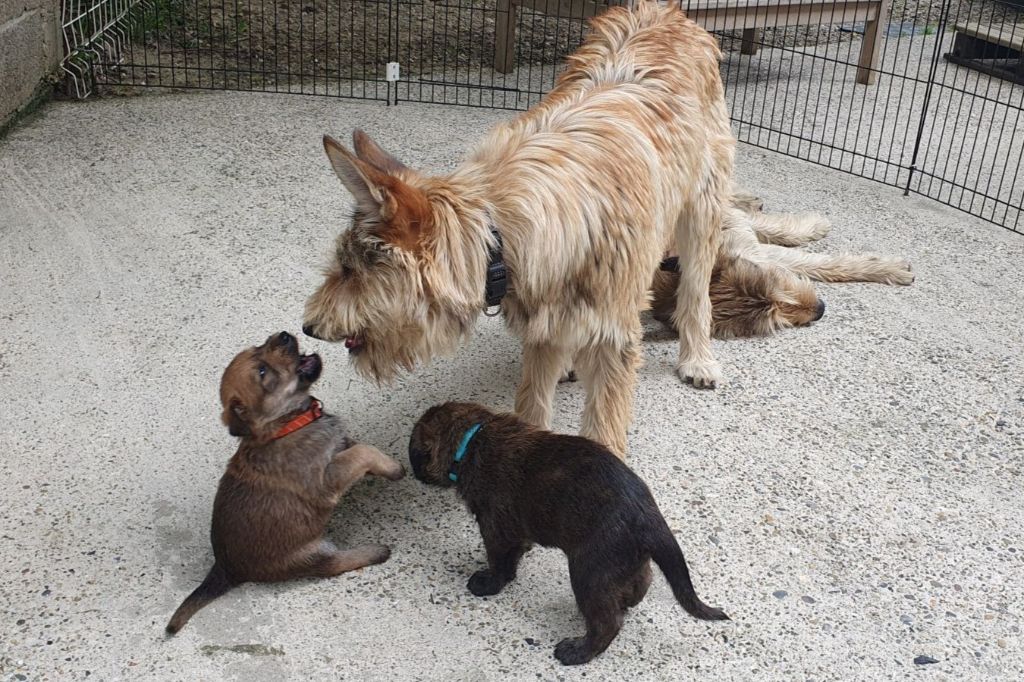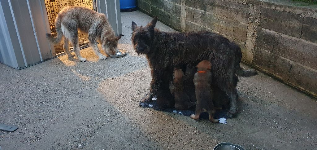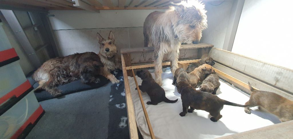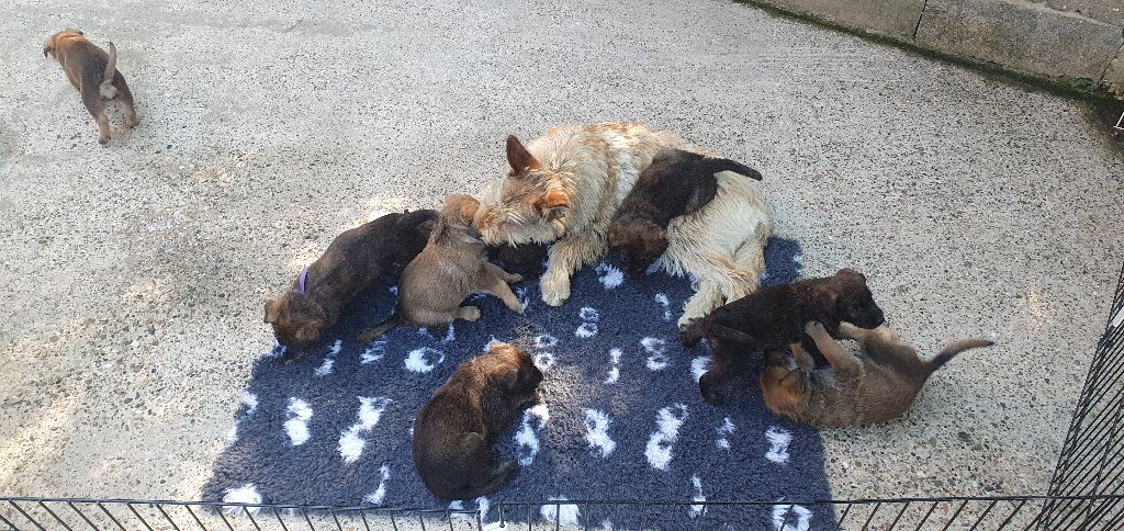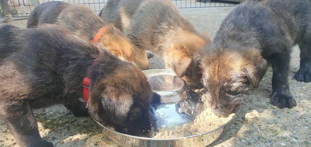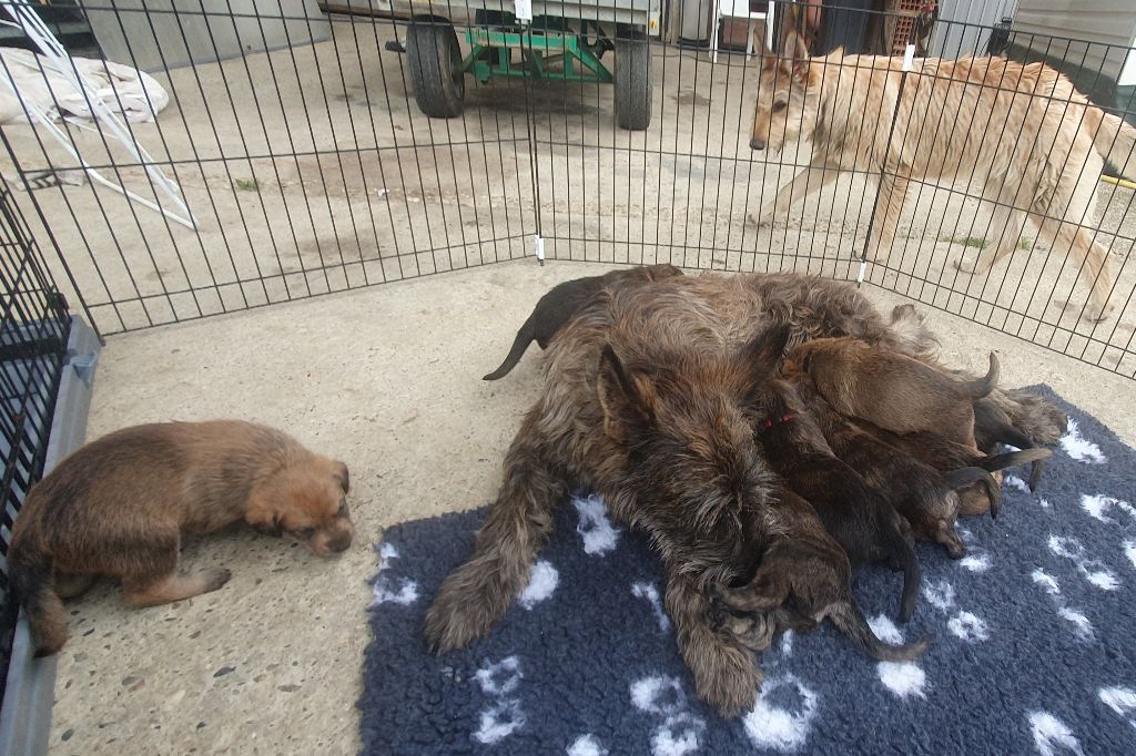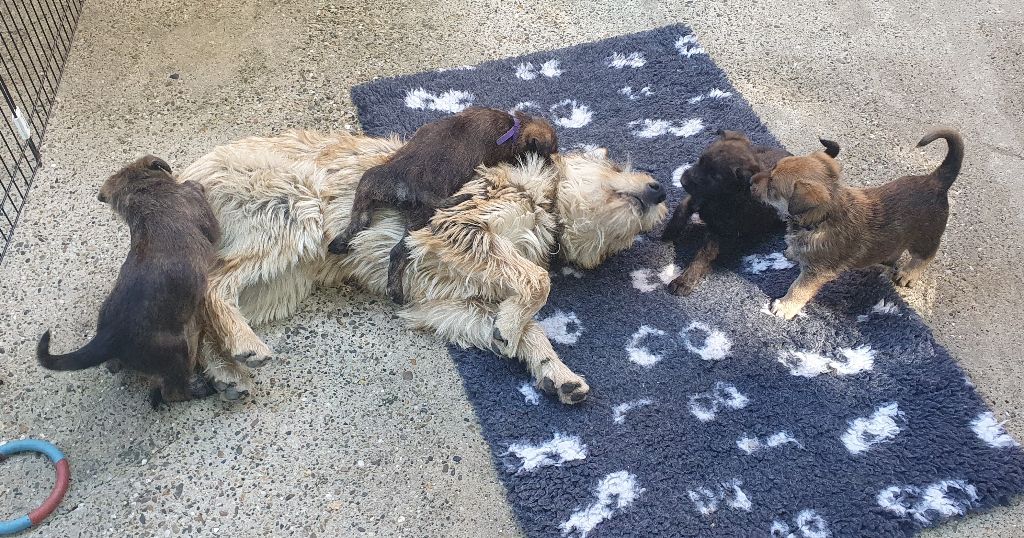 2024 - Les 8 nains de Shere Khan :) Le lendemain de la mise bas Les 8 chiots, 4 femelles 4 males 5 jours avant ;) Même le papa s'occupe de sa progéniture :) Le matin de la mise bas, 9h12, le 1er chiot à naitre. La 1ere sortie femelle fauve collier orange - 9h19 Le 2eme est né - male bringé collier violet - 10h12 Le 3eme est né - male bringé collier bleu - 11h29 Le 4eme est en train de naitre, tout se passe bien. Toujours le 4eme tout juste sortie de sa poche. Le 4eme - male bringé collier marron né à 12h10 18h36 - il y en a 7, au repos après avoir tous tété. 18h30 certainement la fin, le véto avait dit 6 voir 7 :) Shere Khan - une très bonne maman. Radiographie 5 jours avant à la clinique Le vétérinaire en voit 6 voir peut-être 7. 18h50 - Arrivée d'un 8eme. Femelle bringée elle aura le collier jaune Taïko le papa participe ;) Cuvée 2024 Ultime la demi soeur participe aussi :) Une affaire de Famille! On apprend à laper, c'est plus long :) C'est meilleur direct à la tireuse :) On attaque la 4eme semaine ! On est trimballé, maison, remorque, parc :( mais on mange bien :) Maman n'est jamais tès loin :) Notre demi soeur s'occupe de nous aussi. Sous surveillance de Papa :) Notre maître ne fait pas que ramasser nos crottes, il joue aussi :) 4eme semaine avec Maman Papa et notre grande Soeur Ultime :) Notre grande demi-soeur, on l'appelle Tim, c'est plus court. Papa adore faire la vaisselle :) Notre maître passe sa journée à nous compter :) D'ailleur il en manque un, il a du partir en douce, on a rien vu :) Sous la surveillance de Taïko notre Père, attention :) Après une bonne tétée, la sieste avec Maman s'impose :) Voila la pesée, plus de 16,5 kg à nous 8 :) Va falloir trouver mieux que la gamelle pour nous peser :( Atterissage sur le nez. Elle tient pas ta gamelle ! Bhé si ça tient, c'est juste qu'il faut pas bouger :) C'est encore moi le plus gros :) Ma grande soeur m'adore. Elle est super forte :) On peut pas être tranquille :( Tu veux ma photo ?! C'est la récré ! :) Notre grande soeur est top cool! 1, 2, 3, 4, 5, 6, 7, .... il en manque encore un ? Hè j'suis pas en bois ! Patée d'annif, on a 1 mois ! 1, 2, 3, 4, 5, 6, 7, 8. 1, 2, 3, 4, 5, 6, 7, 8. 1, 2, 3, 4, 5, 6, 7, 8. c'est bon ils sont tous là :) Taïko toujours de corvée de vaisselle :) Elle est belle ma Shere Khan! Pesé collier bleu 4630g Pesée collier blanc 4430g Pesée collier orange 4030g Pesé collier violet 4930g Pesée collier rouge 4230g Pesée collier noir 4430g Pesée collier marron 4730g Pesée collier jaune 4430g Sortie quotidienne en famille :)